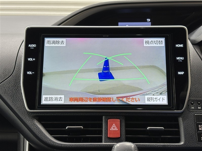 <バックガイドモニター>大画面なので大きく映り、ハンドル操作に連動した予想進路図を確認しながら、より安全に駐車できます!補助装置になりますので、目視でもご確認ください。