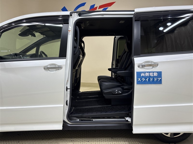 [両側電動スライドドア]スライドドアですので、狭いスペースでも、隣の車を気にせず開閉できます。狭い場所でもドアを十分に大きく開くことが出来るので乗り降りや荷物を載せるのに便利です。
