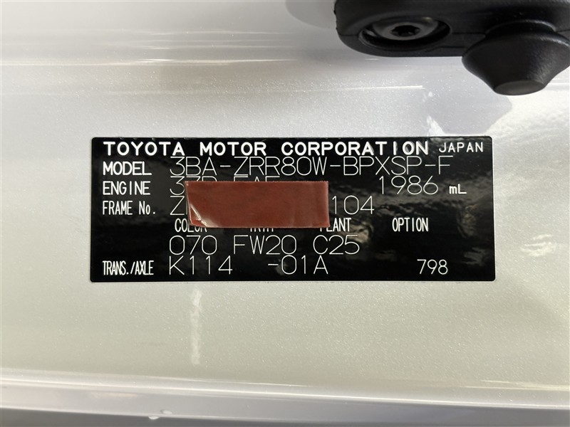 コーションプレートです。フレームナンバーやカラーコードなどが記載されています。