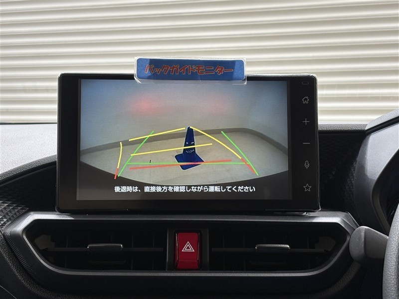 <バックガイドモニター>ハンドル操作に連動した予想進路図を確認しながら、より安全に駐車できます!補助装置になりますので、目視でもご確認ください。