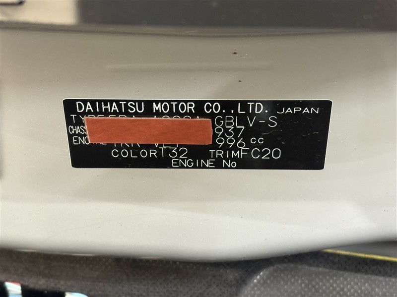コーションプレートです。フレームナンバーやカラーコードなどが記載されています。