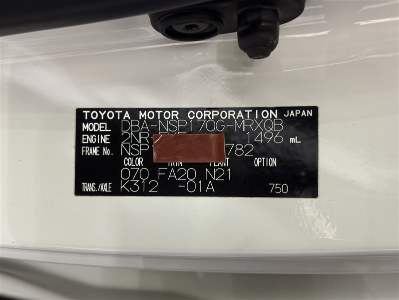 コーションプレートです。フレームナンバーやカラーコードなどが記載されています。