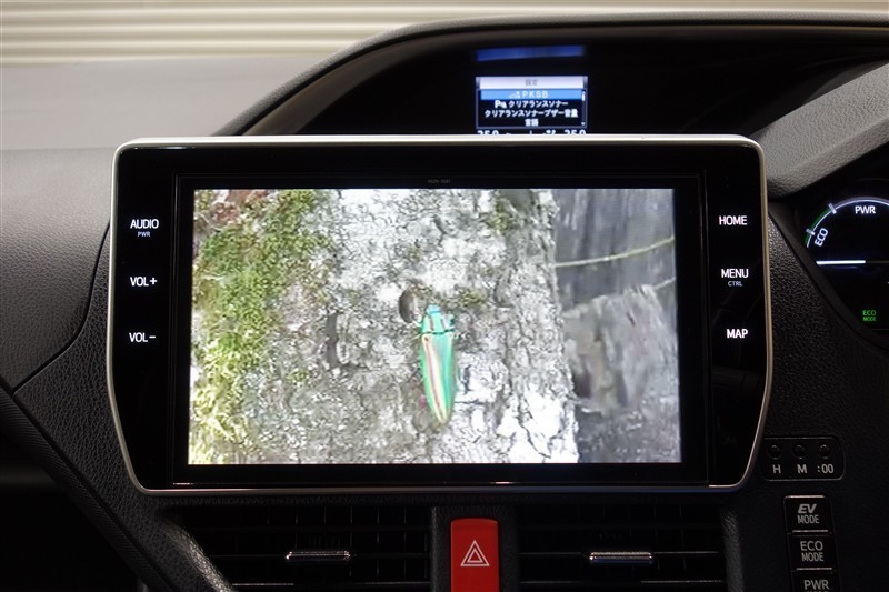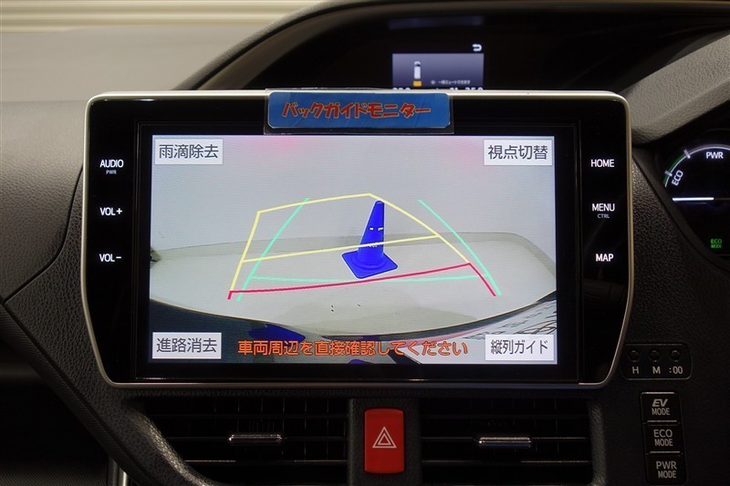 <バックガイドモニター>大画面なので大きく映り、ハンドル操作に連動した予想進路図を確認しながら、より安全に駐車できます!補助装置になりますので、目視でもご確認ください。