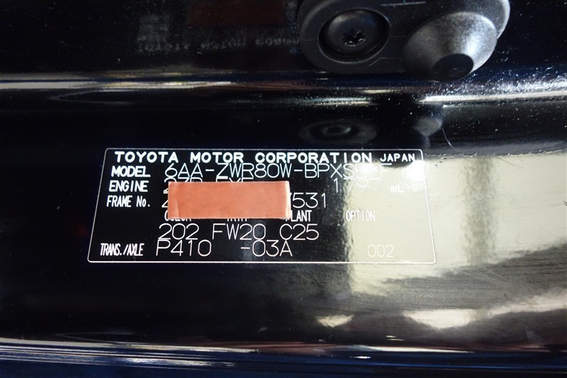 コーションプレートです。フレームナンバーやカラーコードなどが記載されています。