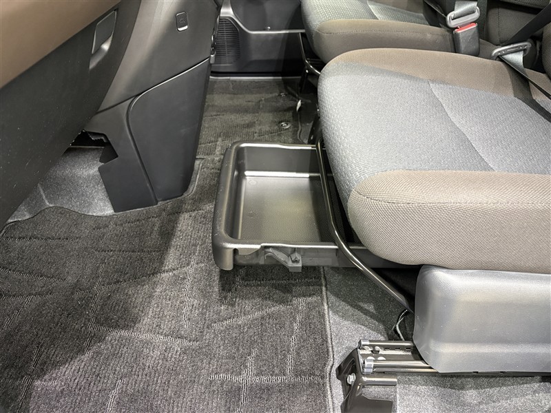 助手席シート下の収納スペースです。普段使わないものを収納しておけます。