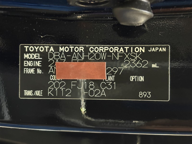 コーションプレートです。フレームナンバーやカラーコードなどが記載されています。