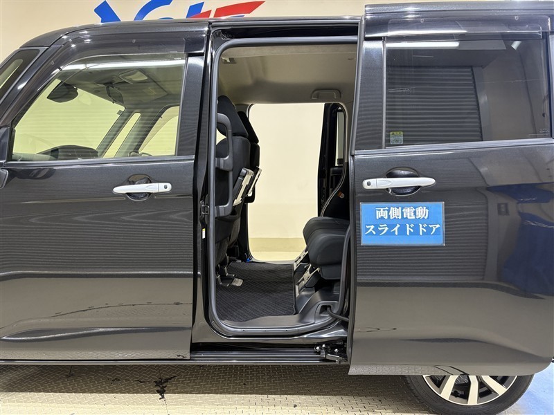 [両側電動スライドドア]スライドドアですので、狭いスペースでも、隣の車を気にせず開閉できます。狭い場所でもドアを十分に大きく開くことが出来るので乗り降りや荷物を載せるのに便利です。
