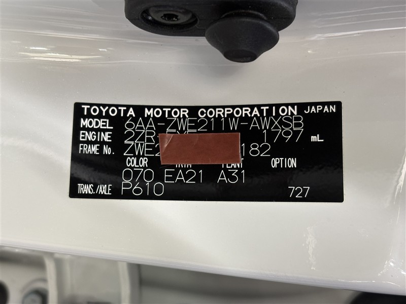 コーションプレートです。フレームナンバーやカラーコードなどが記載されています。