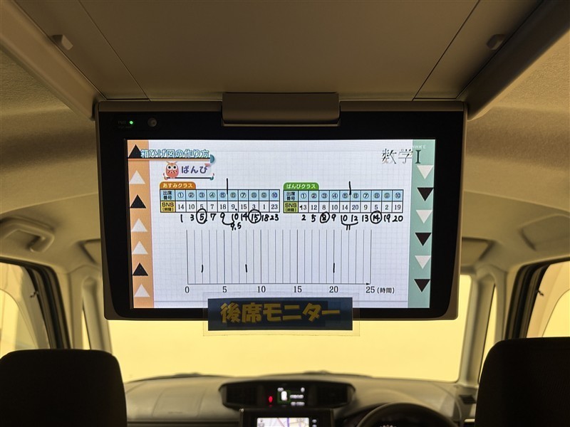 後席モニター付きです。テレビやDVDを観ながら楽しいドライブを!見逃せない装備ですね!!