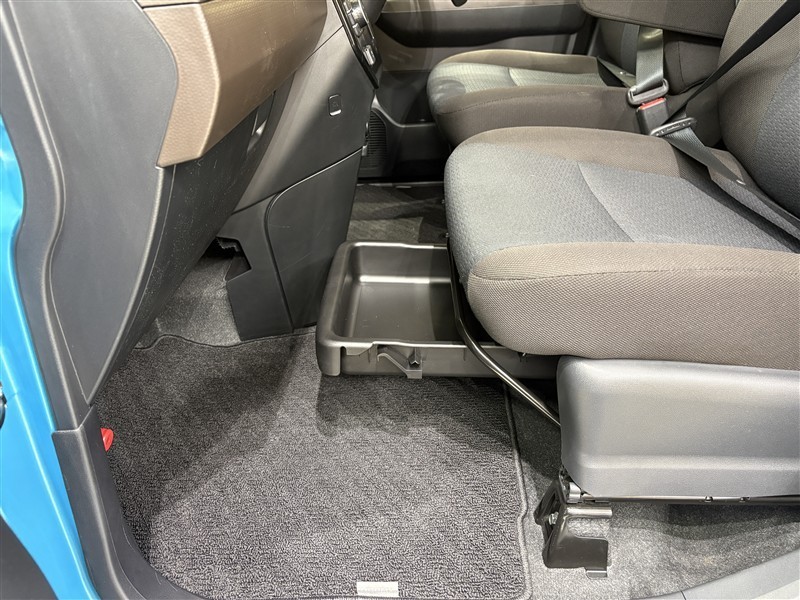 助手席シート下の収納スペースです。普段使わないものを収納しておけます。