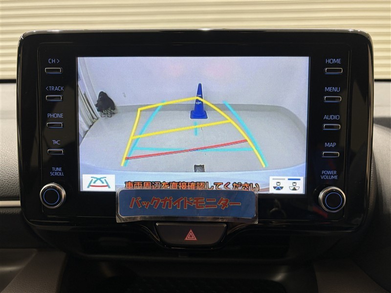 <バックガイドモニター>ハンドル操作に連動した予想進路図を確認しながら、より安全に駐車できます!補助装置になりますので、目視でもご確認ください。