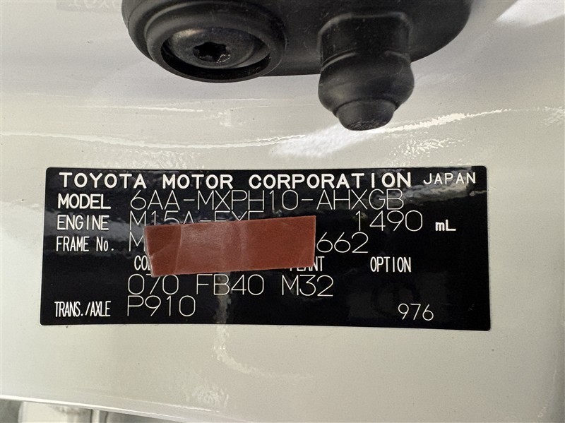 コーションプレートです。フレームナンバーやカラーコードなどが記載されています。