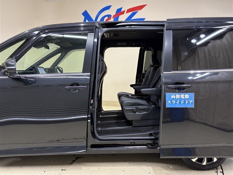 [両側電動スライドドア]スライドドアですので、狭いスペースでも、隣の車を気にせず開閉できます。狭い場所でもドアを十分に大きく開くことが出来るので乗り降りや荷物を載せるのに便利です。