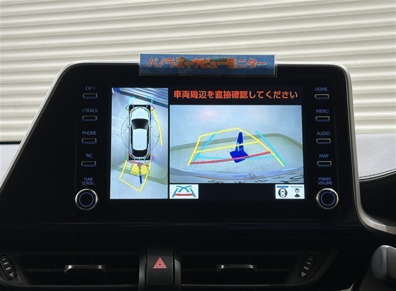 <パノラミックビューモニター>真上から車を見ているように表示されるので、運転席から見えないところも映し出されて確認でき、より安全に駐車できます!バックが苦手な人でも安心ですね♪目視での確認も忘れずに。