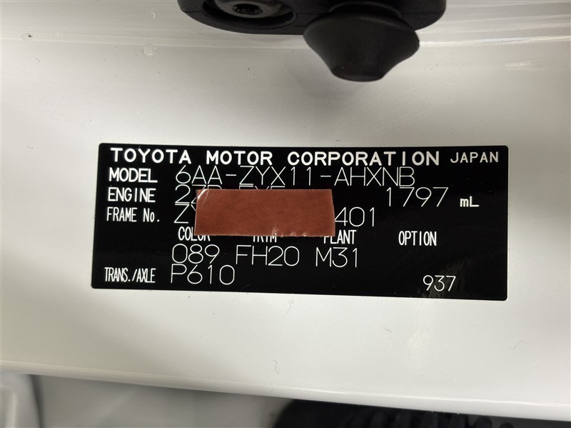 コーションプレートです。フレームナンバーやカラーコードなどが記載されています。