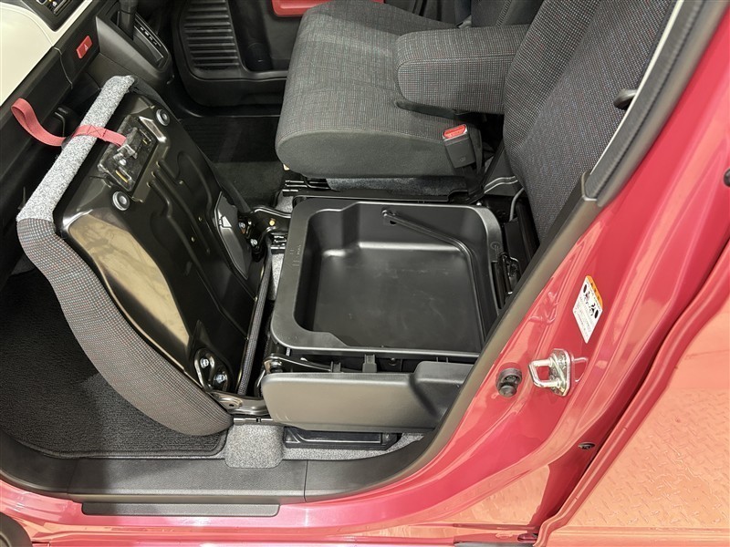 助手席シート下の収納スペースです。普段使わないものを収納しておけます。