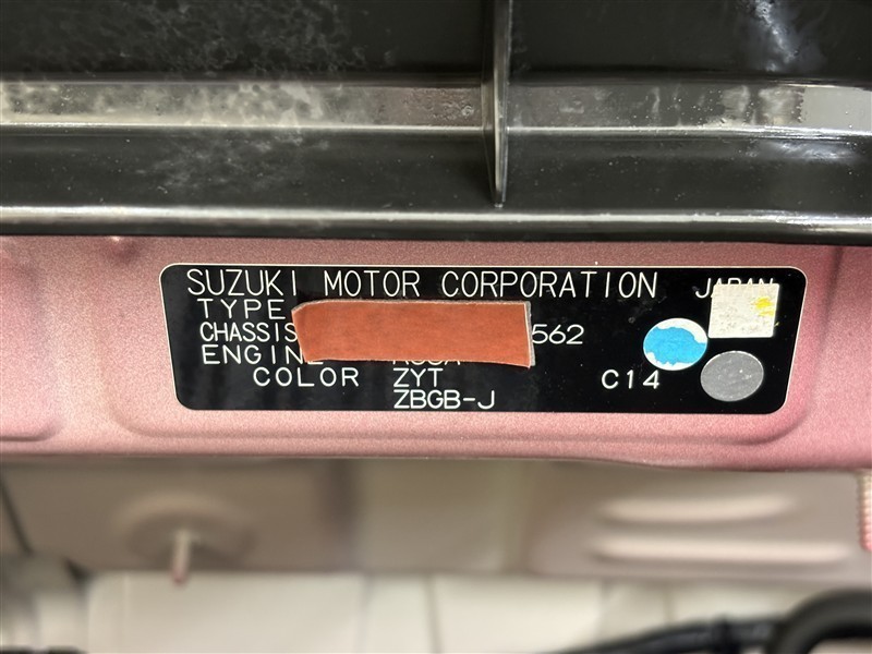 コーションプレートです。フレームナンバーやカラーコードなどが記載されています。