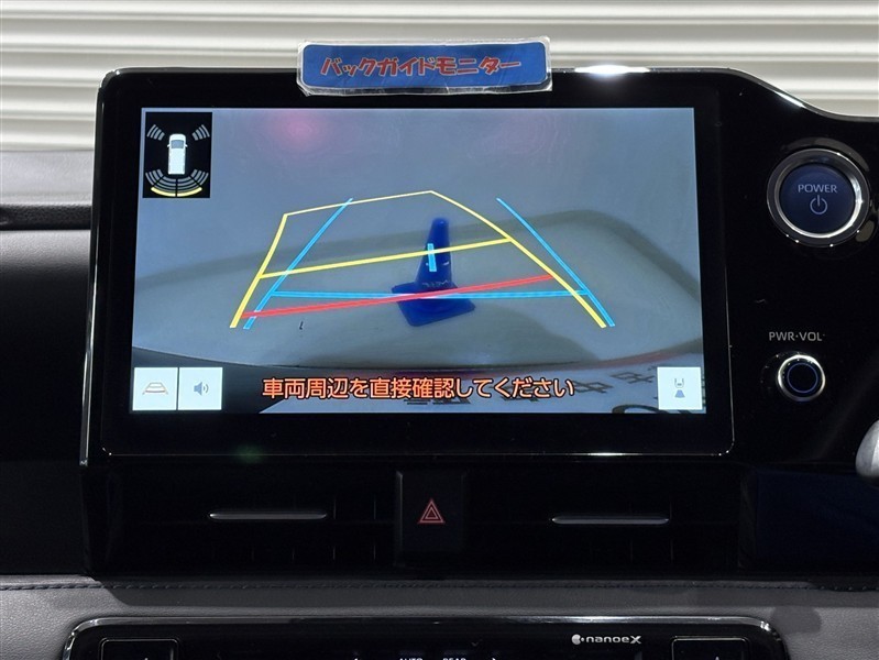 <バックガイドモニター>大画面なので大きく映り、ハンドル操作に連動した予想進路図を確認しながら、より安全に駐車できます!補助装置になりますので、目視でもご確認ください。