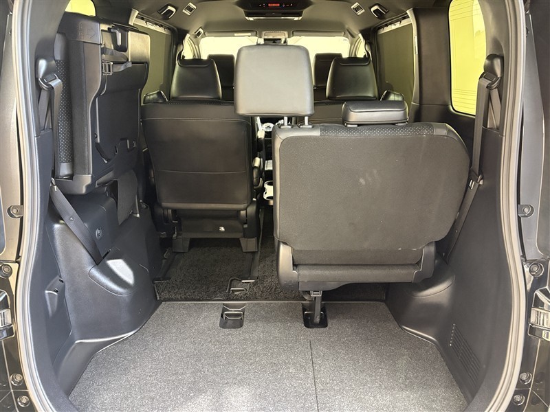 3列目が跳ね上げ式になっているので、跳ね上げて固定すれば広々とした空間が出現!大きな荷物も積めちゃいます。