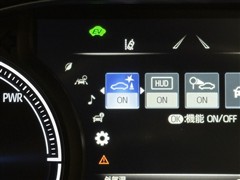 <ヘッドアップディスプレイ>運転席側フロントガラス下側にスピードなどを映し出し視線の移動を少なくします。