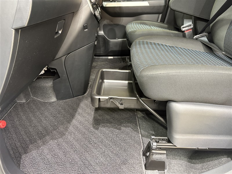 助手席シート下の収納スペースです。普段使わないものを収納しておけます。