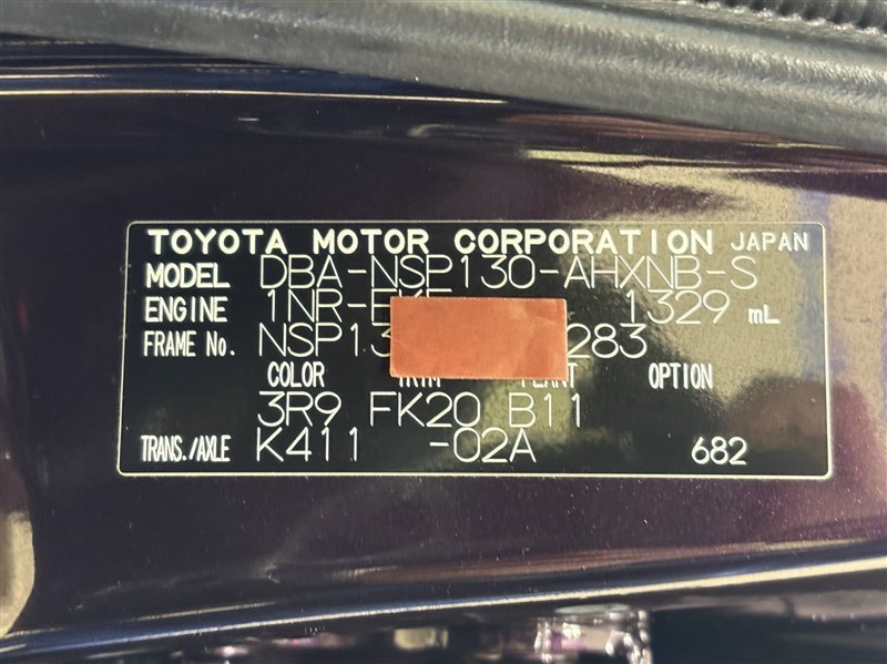 コーションプレートです。フレームナンバーやカラーコードなどが記載されています。