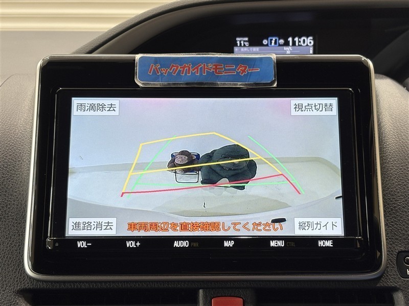 <バックガイドモニター>大画面なので大きく映り、ハンドル操作に連動した予想進路図を確認しながら、より安全に駐車できます!補助装置になりますので、目視でもご確認ください。