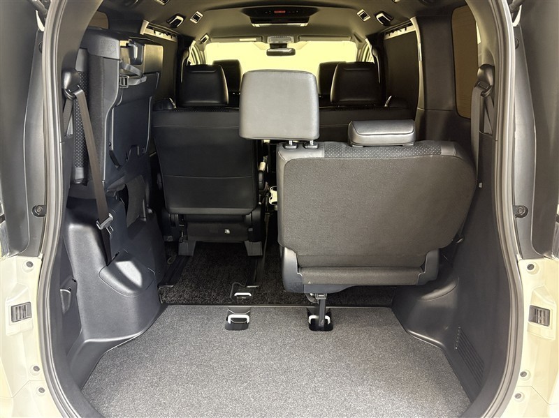 3列目が跳ね上げ式になっているので、跳ね上げて固定すれば広々とした空間が出現!大きな荷物も積めちゃいます。