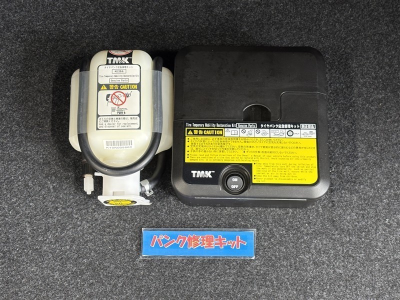 タイヤがパンクした時の応急修理キットです。スペアタイヤがないことにより軽量化でき環境にもいいです。
