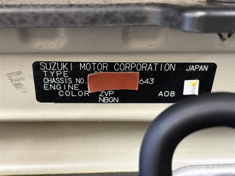 コーションプレートです。フレームナンバーやカラーコードなどが記載されています。
