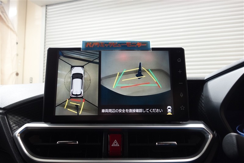 <パノラミックビューモニター>真上から車を見ているように表示されるので、運転席から見えないところも映し出されて確認でき、より安全に駐車できます!バックが苦手な人でも安心ですね♪目視での確認も忘れずに。