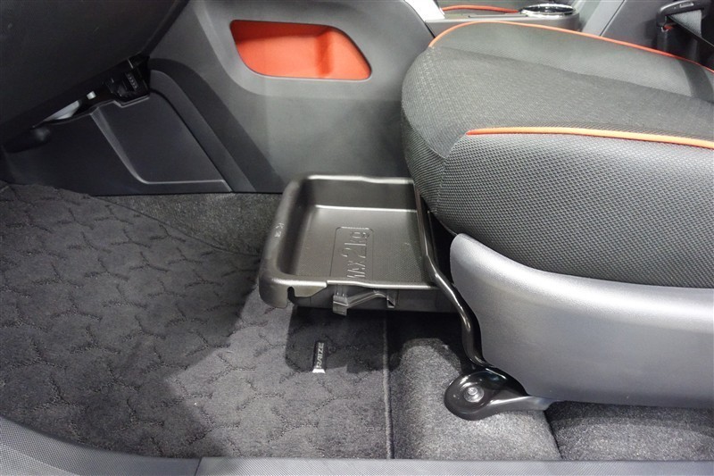 助手席シート下の収納スペースです。普段使わないものを収納しておけます。