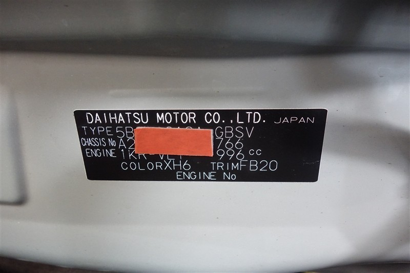 コーションプレートです。フレームナンバーやカラーコードなどが記載されています。