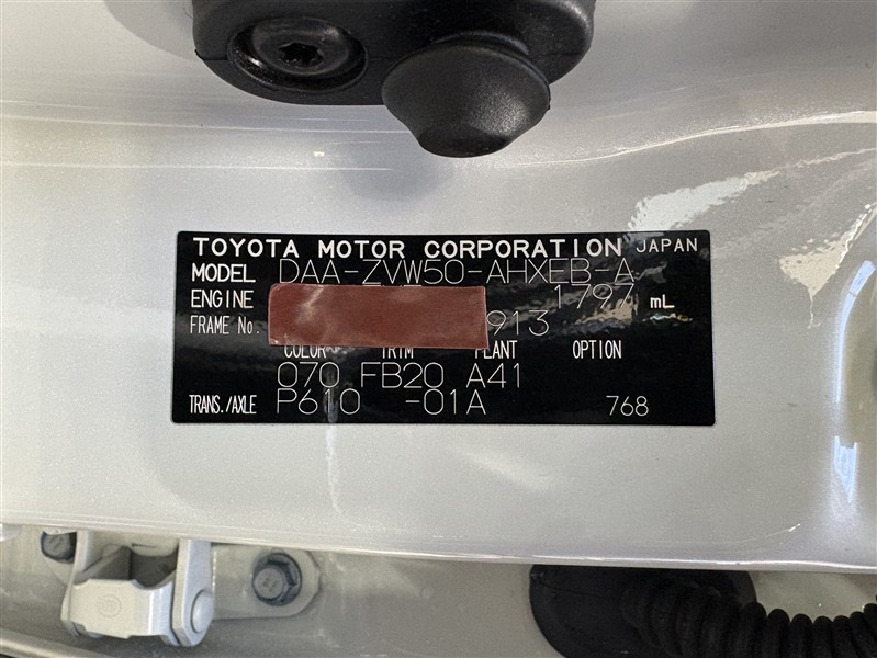 コーションプレートです。フレームナンバーやカラーコードなどが記載されています。