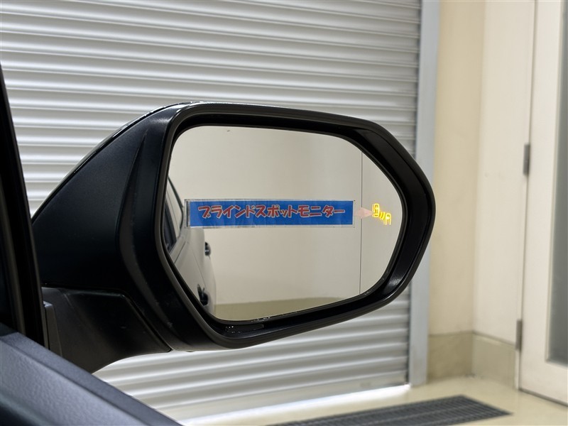 <ブラインドスポットモニター>死角になりやすい斜め後ろの車両や障害物を検知してドアミラー内のランプをオレンジに点灯し知らせてくれます。車線変更や駐車時に安心ですね♪