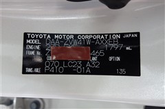 コーションプレートです。フレームナンバーやカラーコードなどが記載されています。