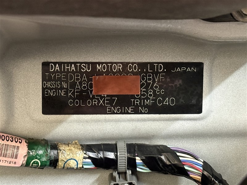 コーションプレートです。フレームナンバーやカラーコードなどが記載されています。