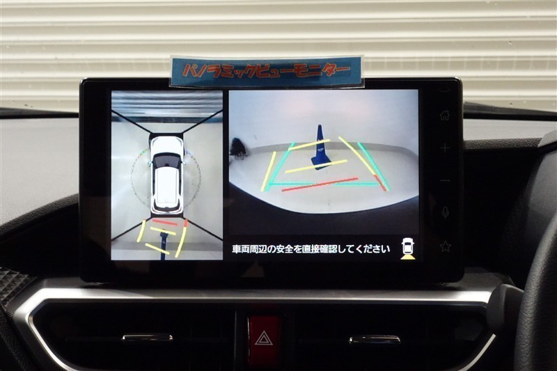 <パノラミックビューモニター>真上から車を見ているように表示されるので、運転席から見えないところも映し出されて確認でき、より安全に駐車できます!バックが苦手な人でも安心ですね♪目視での確認も忘れずに。