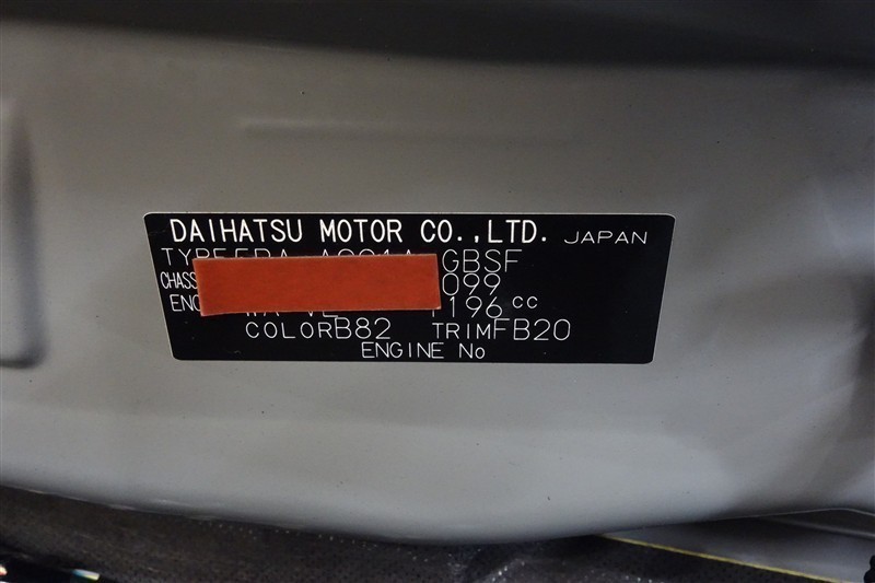 コーションプレートです。フレームナンバーやカラーコードなどが記載されています。
