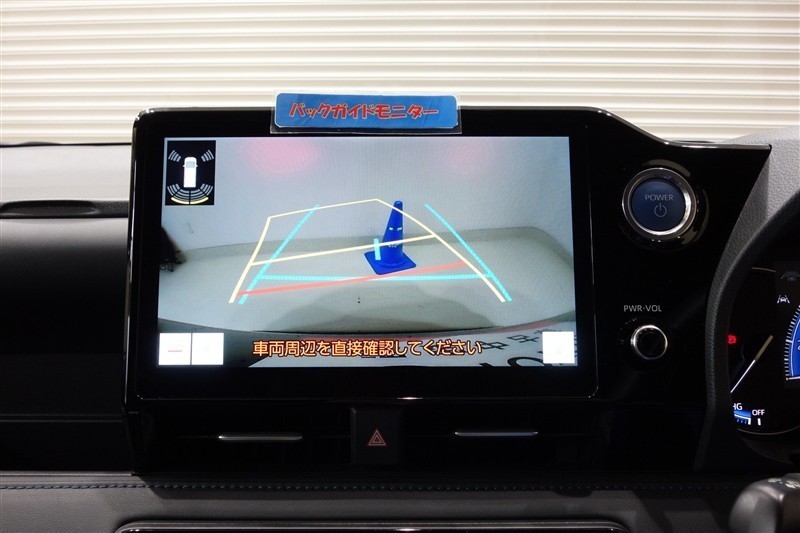 <バックガイドモニター>大画面なので大きく映り、ハンドル操作に連動した予想進路図を確認しながら、より安全に駐車できます!補助装置になりますので、目視でもご確認ください。
