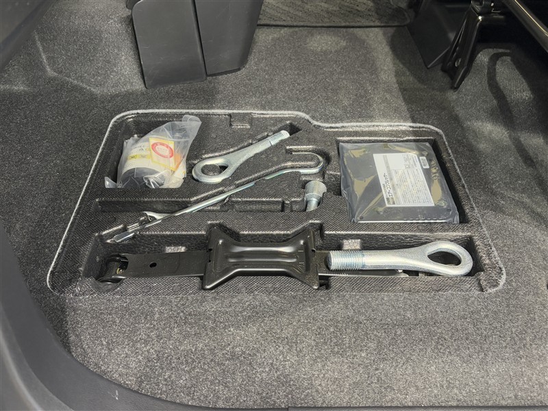 タイヤがパンクした時の応急修理キットです。スペアタイヤがないことにより軽量化でき環境にもいいです。