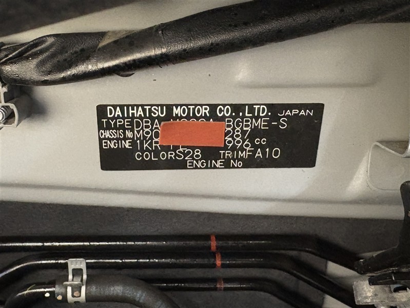 コーションプレートです。フレームナンバーやカラーコードなどが記載されています。