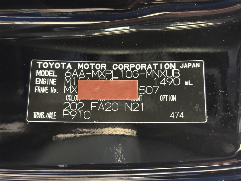 コーションプレートです。フレームナンバーやカラーコードなどが記載されています。