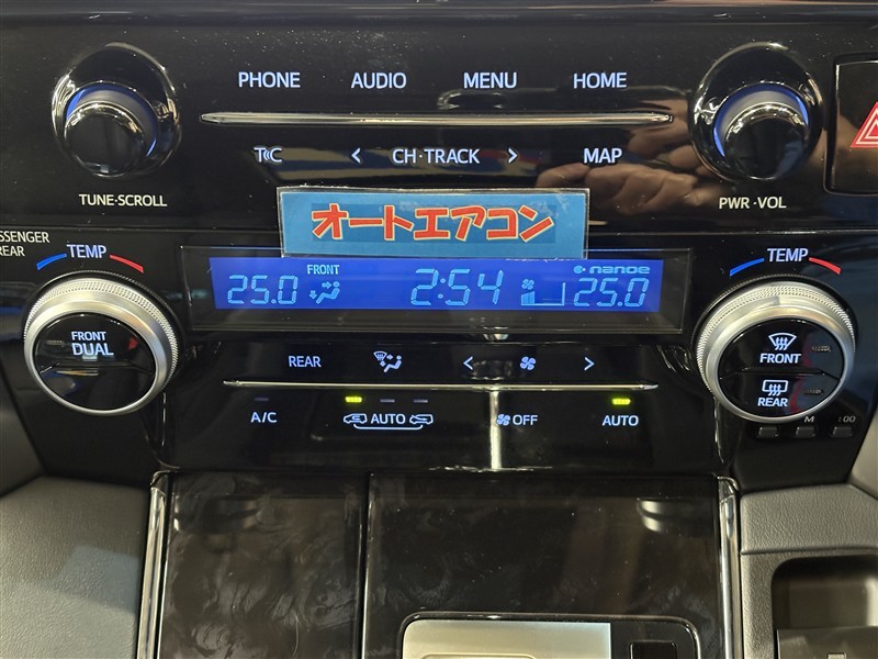 運転席と助手席で温度設定可能なデュアルモードオートエアコン装備。左右独立して自動で温度を調整して快適空間を保ちます。