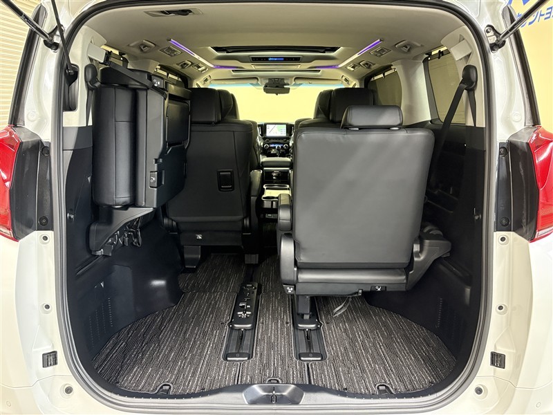3列目が跳ね上げ式になっているので、跳ね上げて固定すれば広々とした空間が出現!大きな荷物も積めちゃいます。