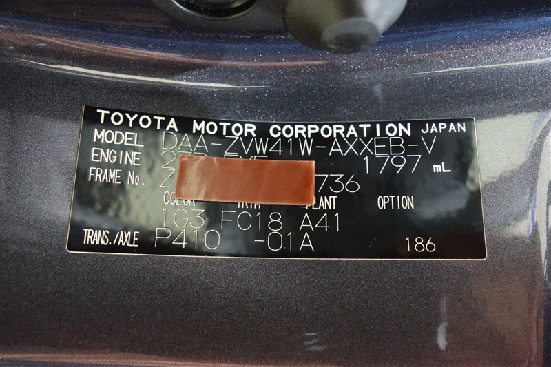 コーションプレートです。フレームナンバーやカラーコードなどが記載されています。