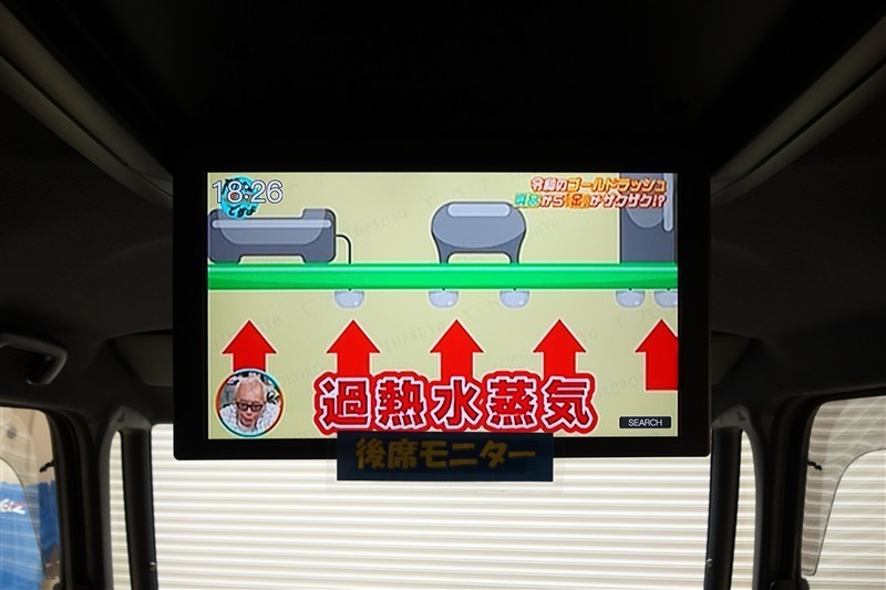 後席モニター付きです。テレビやDVDを観ながら楽しいドライブを!見逃せない装備ですね!!