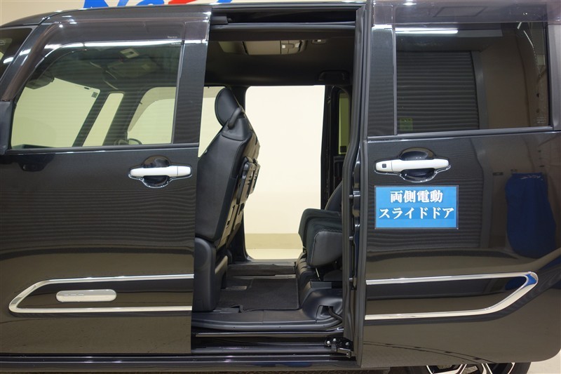 [両側電動スライドドア]スライドドアですので、狭いスペースでも、隣の車を気にせず開閉できます。狭い場所でもドアを十分に大きく開くことが出来るので乗り降りや荷物を載せるのに便利です。