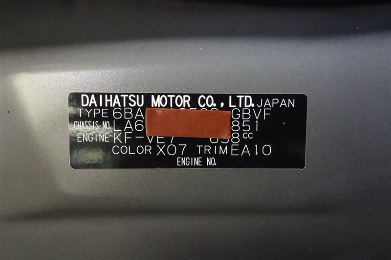 コーションプレートです。フレームナンバーやカラーコードなどが記載されています。