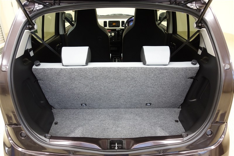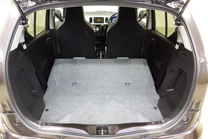 軽自動車でも奥行きと開口幅を確保して広々としたゆとりある大容量のラゲージスペースです。